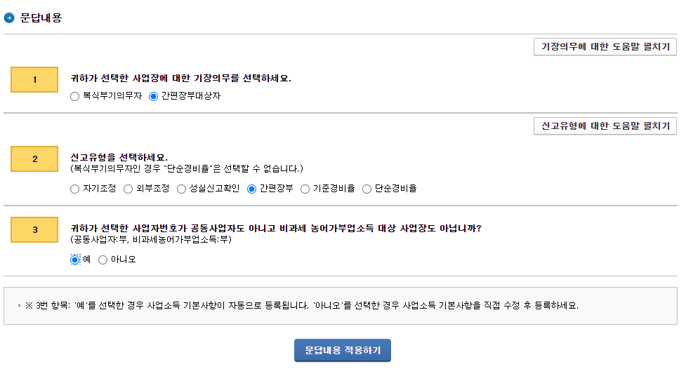 거기서 간편장부 라디오 버튼을 선택하면 된다.