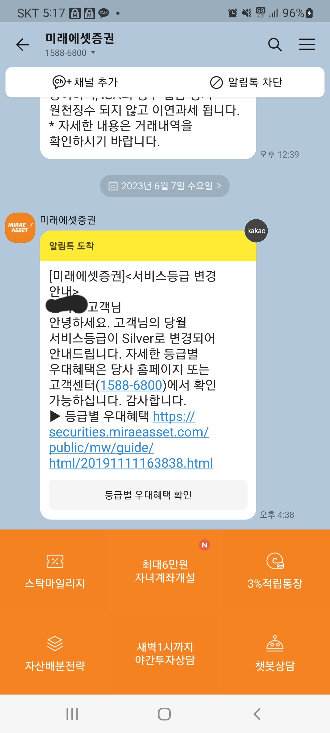 말일자에 돈 3천 넣고 1일에 확인해보면 바껴있지 않을 것이다. 영업일 4일째만에 등급이 변경 되었다고 노티가 왔다.