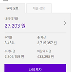 2017-06-25 일 캡처화면 우연히 재테크 책을 읽고 그 책에서는 머니옥션이라는 곳에 투자해보라고 했다. 그 말만 듣고 또한 여신에 대한 감을 잡기 위해서 시작했는데... 결과는 비참했다.. 회사가 망했다. 아 내 피같은돈 30여만원이 날라가는 순간이였다... 지금도 전화도 안된다. 이렇게 p2p에 대해 비참한 경험이 있었는데 우연히 8퍼센트라는 것을 인터넷에서 봤다. 사장님이 여자고 기사 내용이 참신했다. 머니옥션처럼 꽁꽁숨기고 공개 안하는것이 아니라 모든것을 다 공개하는것이 당당해보였다. 그래서 한번 투자를 해봤다. 하나씩 투자를 하다보니 지금은 수십개의 채권을 소유하게 되었다. 1퍼센트의 은행 금리에 비해서 확실히 많이 나오긴 하는것 같다. 여신, 대출에 대해서 공부해보려고 시작한 8퍼센트 p2..